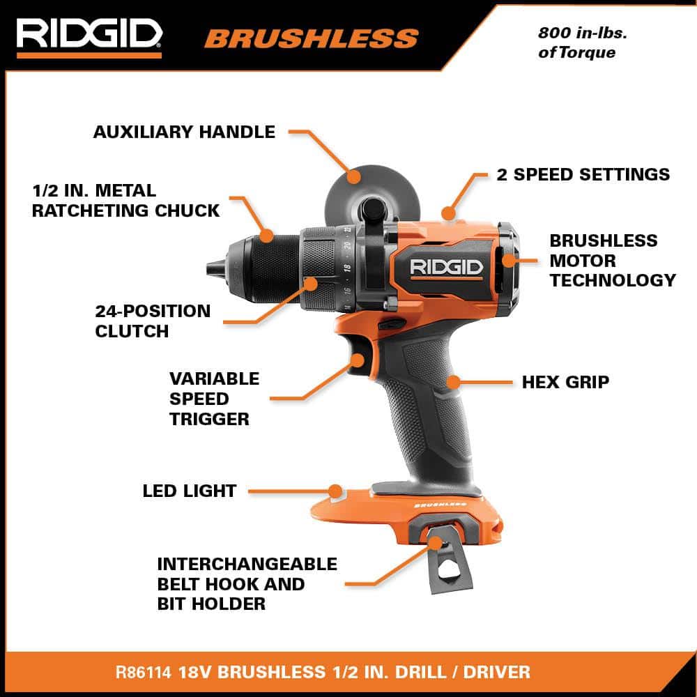 RIDGID introduces the 18V Brushless Cordless 1/2 in. Drill/Driver (Tool Only). With registration, this Brushless Cordless 1/2 in. Drill/Driver (Tool Only) is backed by the Industry's Only Lifetime Service Agreement. The 18V Brushless Cordless 1/2 in. Drill/Driver includes an operator's manual. Battery and charger sold separately.