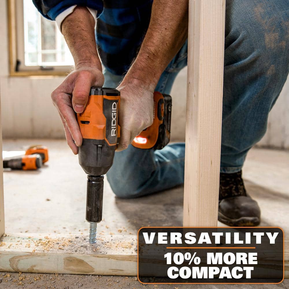 RIDGID introduces the 18V Brushless 4-Mode 1/2 in. Mid-Torque Impact Wrench with Pin Detent. RIDGID’s brushless motor technology delivers maximum performance and longer runtime. This Brushless Mid-Torque Impact Wrench delivers 650 ft-lbs. of breakaway torque and is 10% more compact than the previous generation. Built with 3 speeds and an auto tightening mode, users can adjust speed and power for added control. This Brushless Mid-Torque Impact Wrench utilizes auto-tightening mode to automatically stop when fastening bolts to prevent over tightening. In reverse, this mode delivers full breakaway torque, then stops when the bolt is loose. RIDGID’s Brushless Mid-Torque Impact Wrench with Pin Detent features an onboard LED light for improved visibility. As always, this RIDGID 18V Brushless 4-Mode 1/2 in. Mid-Torque Impact Wrench is 100% compatible with all RIDGID 18V batteries. Best of all, this tool is backed by the Industry’s Only Lifetime Service Agreement, simply register within 90 days of purchase for FREE Batteries, FREE Parts, FREE Service, FOR LIFE. The RIDGID Brushless Mid-Torque Impact Wrench includes the 18V Brushless 4-Mode 1/2 in. Mid-Torque Impact Wrench with Pin Detent, belt hook with screw, and operator’s manual. Battery and charger sold separately.