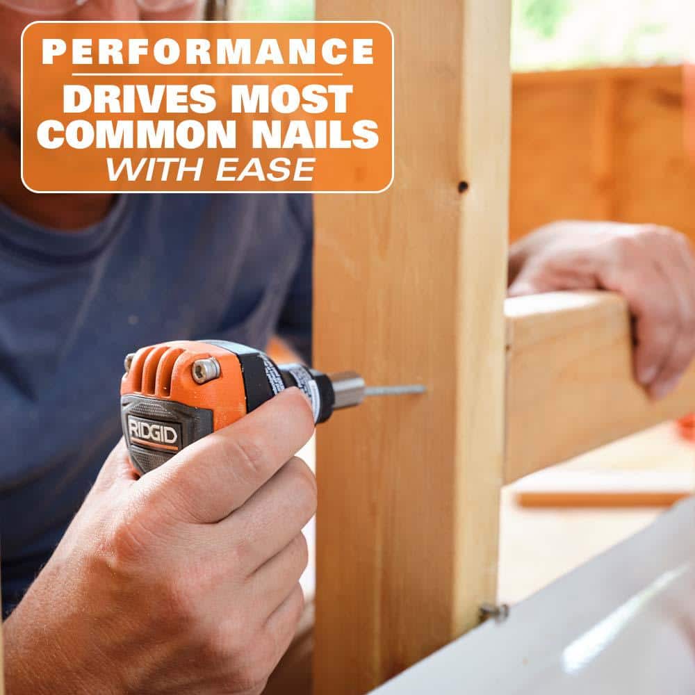 RIDGID introduces the R350MPF Mini Palm Nailer. This Mini Palm Nailer is 65% more compact than the existing Palm Nailer (R350PNF). Great for installing metal connectors in the framing stage, RIDGID’s Mini Palm Nailer gets into tighter spaces that framing nailers or hammers can’t. Weighing in at only 1 pound, this nailer is capable of driving most common nails all day with ease. The magnetic nail channel keeps nails in place for efficient one-handed operation. The integrated quick-connect swivel coupler delivers more maneuverability with fewer air hose kinks. Best of all, the Mini Palm Nailer is eligible for the Industry’s Best Lifetime Service Agreement, simply register within 90 days of purchase for FREE Parts, FREE Service, FOR LIFE. The R350MPF includes the palm nailer, oil, and hex key.