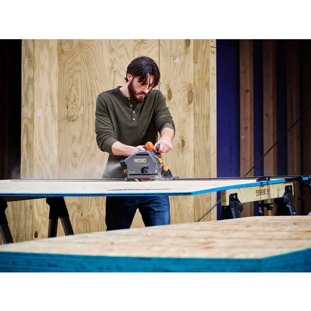 RIDGID introduces the AC55TS 55 in. Track Saw Guide Rail. Compatible with the RIDGID R48630 18V Brushless 6-1/2 in. Track Saw, the 55 in. Track Saw Guide Rail is a two-piece aluminum track design which delivers precise and accurate cutting with improved portability. The 55 in. Track Saw Guide Rail utilizes (2) 27-1/2 in. tracks which are both equipped with a rubber cut strip for splinter free cuts. Ideal for cutting sheet material, this accessory can be paired with other RIDGID tracks to complete those longer cuts. With holes located on both ends, this guide rail can be stored on a hook or nail for added user convenience. Additionally, this is equipped with an integrated accessory slot so other compatible tools can take advantage of this guide rail’s precision. The AC55TS 55 in. Track Saw Guide Rail includes the AC55TS Guide Rail and (4) connector bars.